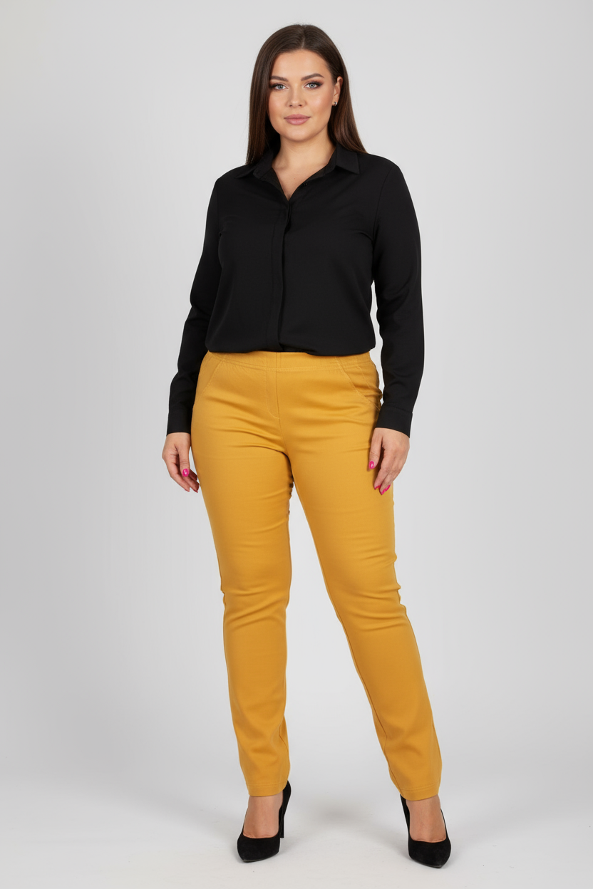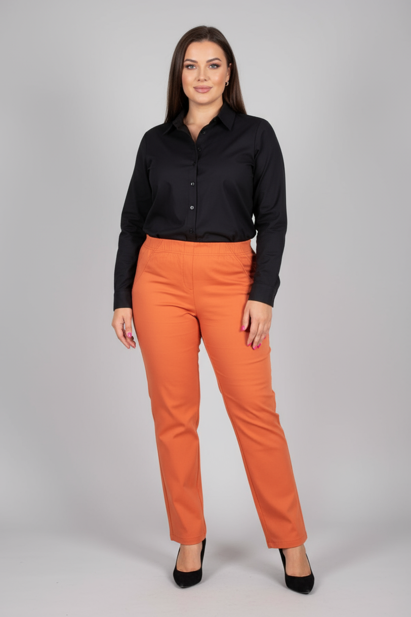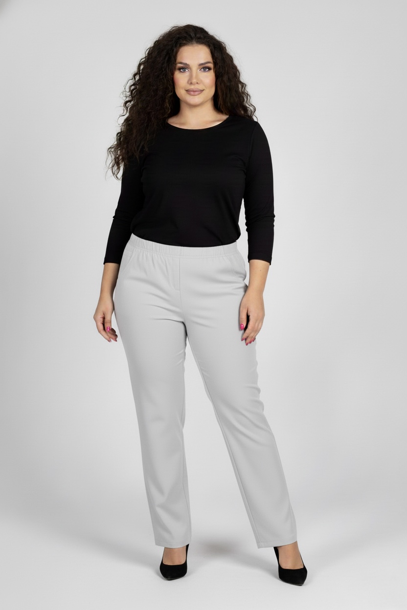 Klasyczne spodnie z wysokim stanem i prostej, długiej nogawce. Wykonane z elastycznej tkaniny, świetnie dopasowują się do sylwetki i zapewniają pełen komfort noszenia.