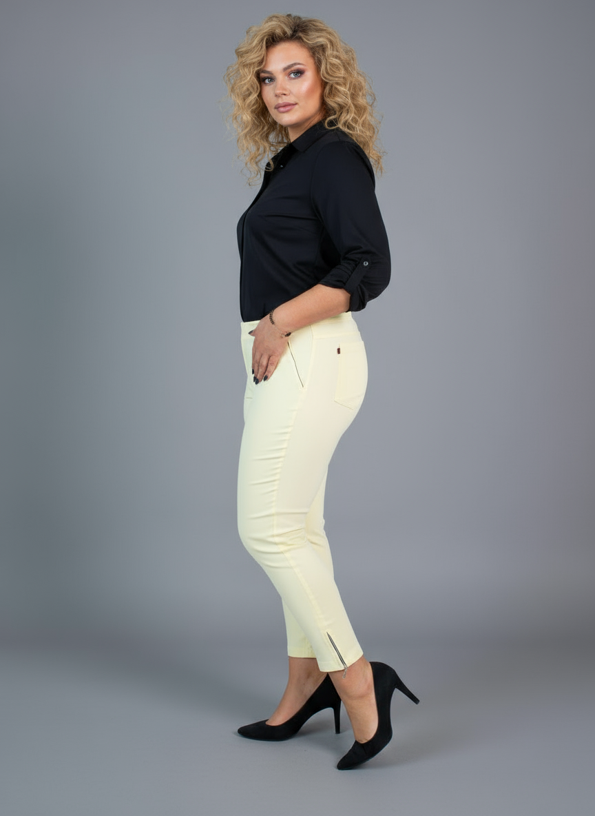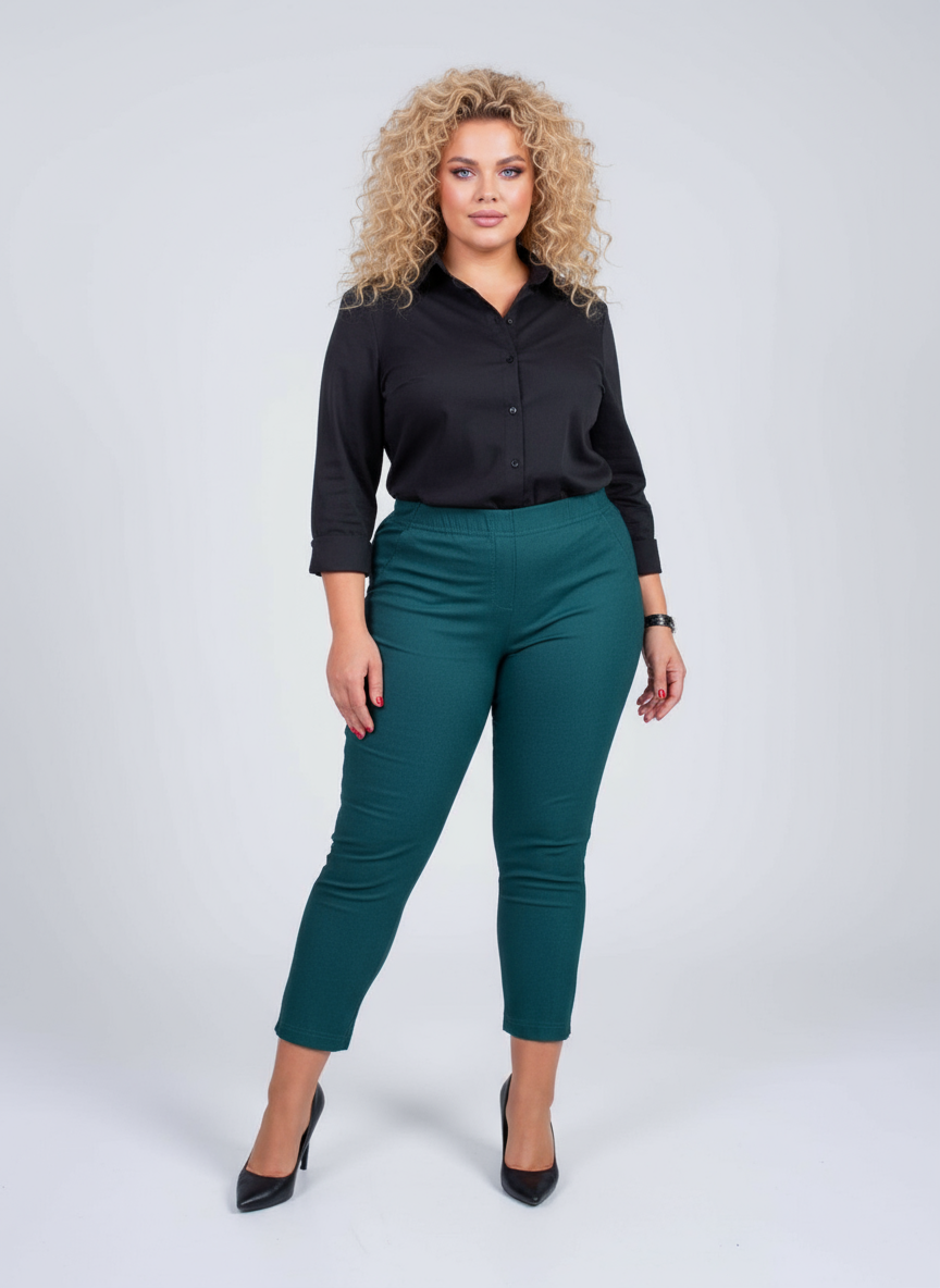 Elastyczne, wygodne i zawsze modne. Spodnie 7/8 z wysokim stanem pięknie podkreślą sylwetkę i sprawią, że poczujesz się swobodnie przez cały dzień.